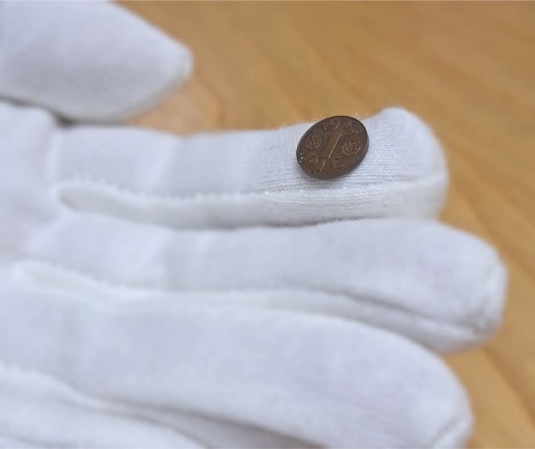 O elemento central do projeto, a perfuração no disco metálico, possuía uma justificativa funcional. Considerando que moedas de baixo valor tendem a apresentar dimensões reduzidas, o furo permitiria aumentar o diâmetro da peça sem acréscimo significativo no volume de metal empregado, favorecendo sua identificação tátil e visual pelos usuários. Dessa forma, buscava-se conciliar economia de material com maior praticidade no uso cotidiano. A peça apresenta diâmetro de 15,5 mm, proporção que reforça essa intenção de equilíbrio entre custo e funcionalidade.